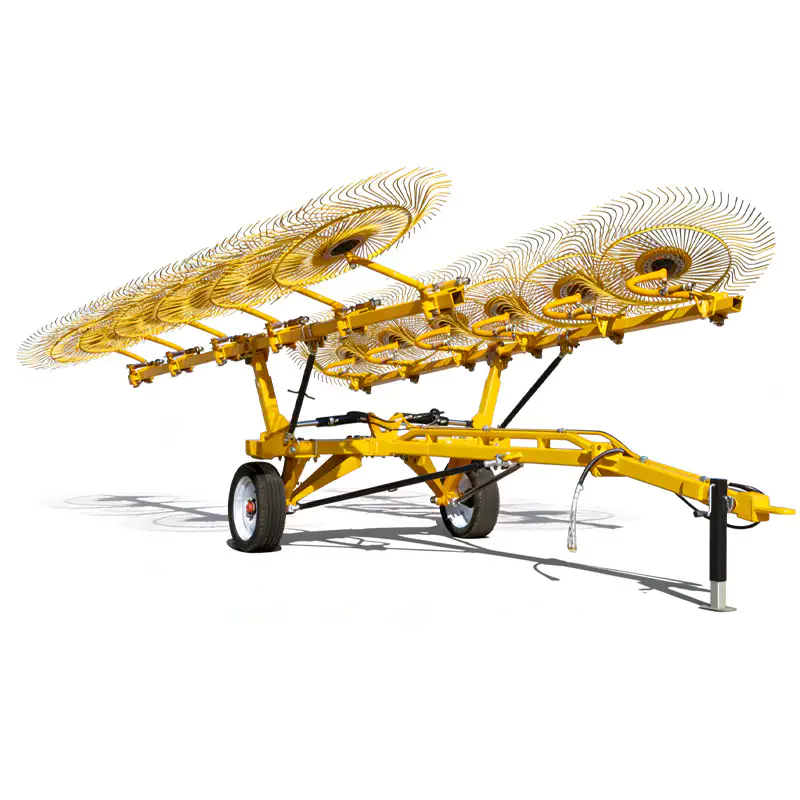 Le 9LZ-6.0 Trailed Finger Wheel Hay Rake (12-Wheel Configuration) is an indispensable engineering asset for modern commercial crop aggregation. Purpose-built as a high-capacity trailing implement, this industrial-grade Râteau agricole is meticulously calibrated to manage large volumes of post-harvest forage, delicate legumes, and dense crop residues. Diverging from high-friction, maintenance-heavy rotary architectures, this highly intelligent finger wheel system harnesses the forward kinetic energy of the towing tractor to initiate its rotational gathering mechanics. It excels at consolidating cut, sun-cured forage or rigid agricultural straw into continuous, aerated windrows. Furthermore, its geometrical flexibility allows it to perform essential tedding operations—turning the crop to drastically accelerate the solar curing process.